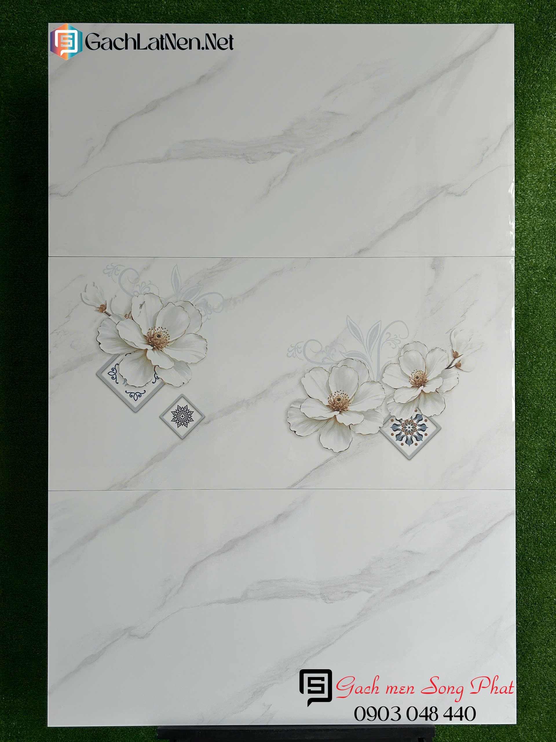 Gạch ốp tường Royal 40×80 FH48001 trắng trơn khói Hoa văn